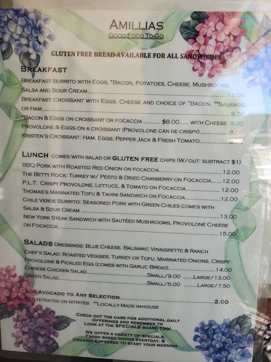 Welcome to Amillia's, your go-to spot at 443 Melville Rd, Garberville, CA. This charming eatery captures the essence of wholesome, locally-sourced cuisine while delivering a warm, inviting atmosphere. Whether you're looking for a quick lunch or a cozy breakfast, Amillia's has something delicious waiting for you.